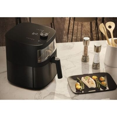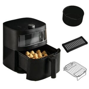 Pencere, sepeti açıp ısı kaybetmenize gerek kalmadan pişirme sürecini kolayca izlemenizi sağlar. Fritözün ön tarafındaki yüksek konumu, yemeğinizin üst kısmının ne kadar iyi kızardığını görebileceğiniz anlamına gelir.