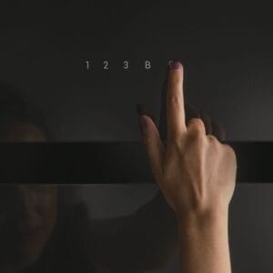 Mutfakta uyumlu tasarım için beyaz LED’li zarif dokunmatik kontrol paneli.